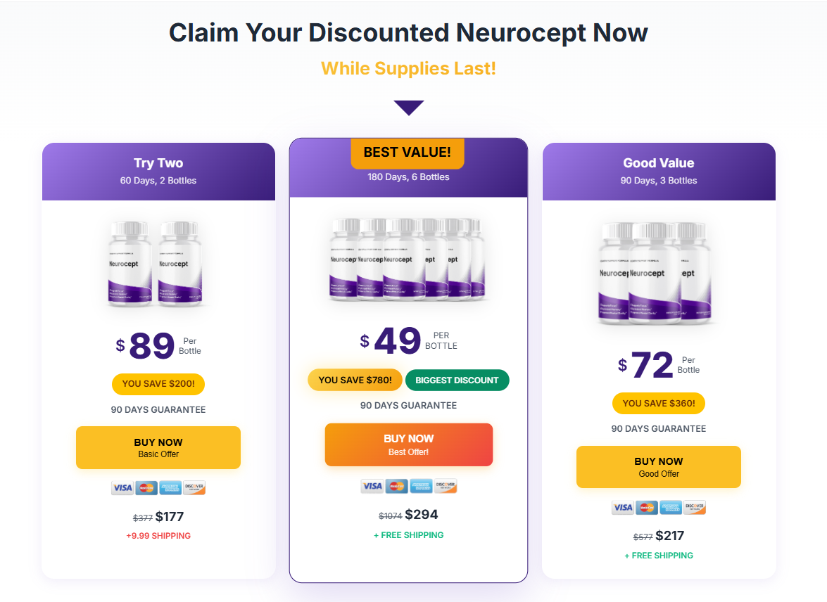 👉 If you’re tired of feeling stuck — tired, forgetful, and left behind — give yourself the chance to feel alive again. Neurocept’s 6-bottle package is the smart choice: biggest discount, free shipping, and all the bonus guides to help you get results even faster.